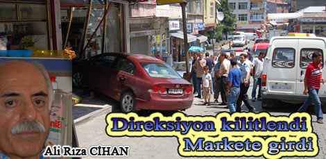 Pazar ilçesinde meydana gelen ilginç kazada 69 yaşındaki Ali Rıza Cihan’ın kullandığı 06 KTP 41 plakalı özel otomobil, direksiyonunun kilitlenmesi sonucu markete girdi. Market vitrinini dağıtarak camları kıran araçta hasar oluşurken can kaybı yaşanmaması tek teselli oldu.