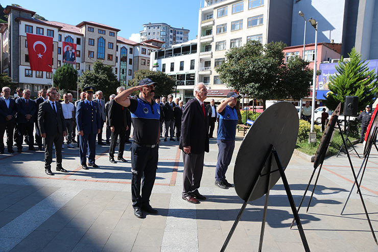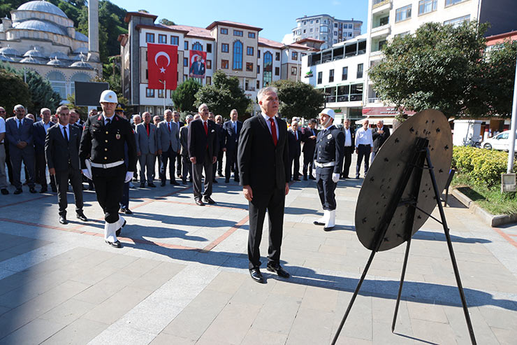 Rize Valiliği önünde düzenlenen törende İSE Atatürk Anıtı'na çelenk sunularak saygı duruşunda bulunuldu, İstiklal Marşı okundu.