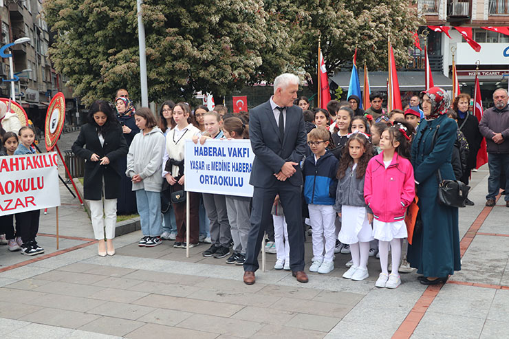 Pazar 15 Temmuz Demokrasi Meydanı Atatürk Anıtı önünde saat 10.30’da başlayan 23 Nisan Ulusal Egemenlik ve Çocuk Bayramı programında ilk olarak İlçe Milli Eğitim Müdürlüğü çelengi sunulurken ardından bir dakikalık saygı duruşunda bulunularak İstiklal Marşı okundu.