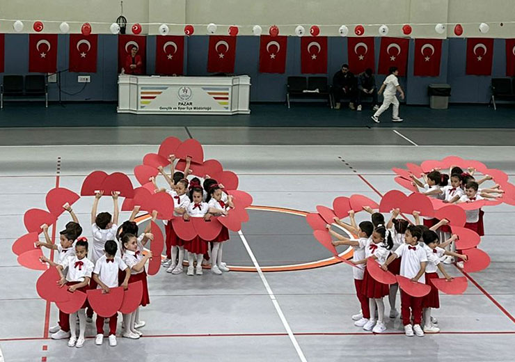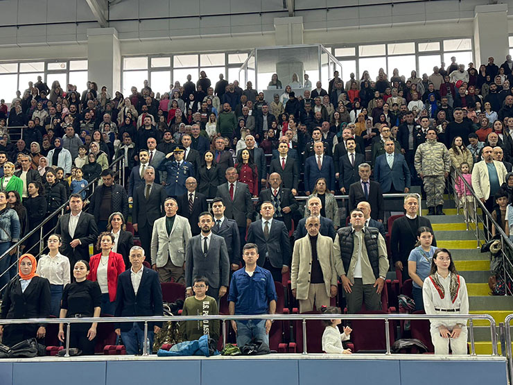 Meydandaki törenin ardından M. Akif Pirim Spor Salonundaki etkinliklerle kutlama programı devam etti.