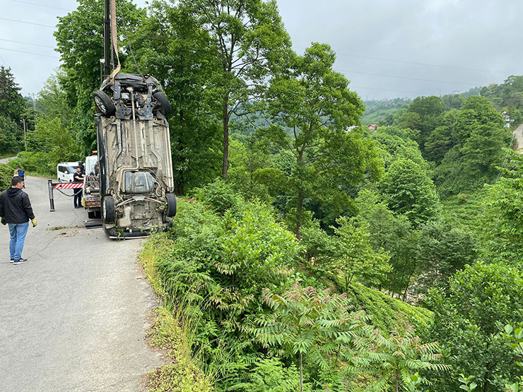 Araç ise vinç yardımıyla bulunduğu yerden kaldırıldı.