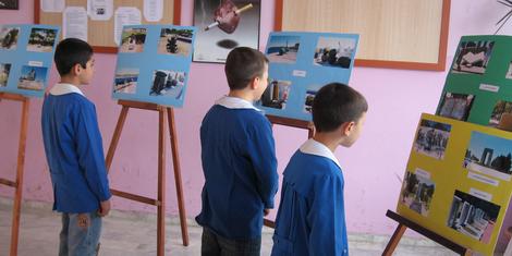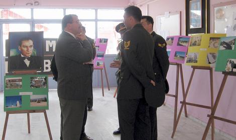 Çanakkale Zaferi'ni, öğrencilerin daha iyi kavraması için hazırlanan görsel materyaller, okulun zemin katında bulunan salonda sergilendi. Çanakkale anıtları, şehitlikler, Mehmetçik anıtı, tabyalar, mayınlar, kaleler ve müzeden alınan görüntüler, tüm ziyaretçiler tarafından merak ve ilgiyle incelendi.