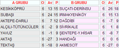 | 13:00 | KESİKKÖPRÜ | AKTAŞ | 9 | - | 4 |