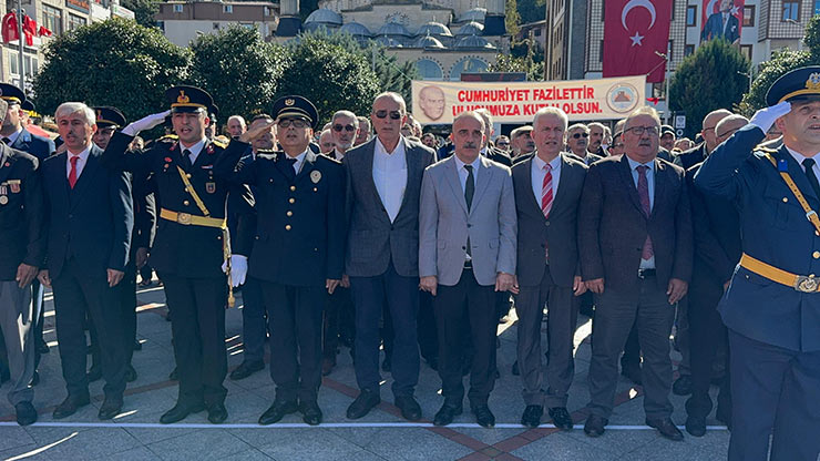 Haberal Ortaokulu öğretmeni Burak Çevik’in sunuculuğunu yaptığı tören, 15 Temmuz Demokrasi Meydan’ında yer alan Atatürk Anıtı’na Pazar Kaymakamı Hamza İnam, İlçe Garnizon Komutanı Hava İstihkâm Murat Demirbaş ve Belediye Başkanı Neşet Çakır’ın çelenk sunumuyla başladı.