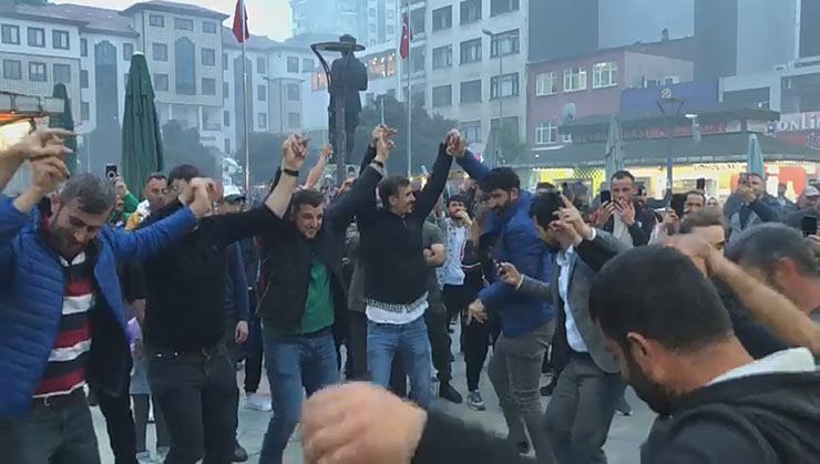 Cumhurbaşkanlığı seçimlerinde ipi yeniden göğüsleyen R. Tayyip Erdoğan'ın memleketinde vatandaşlar sokakta zaferi kutluyor