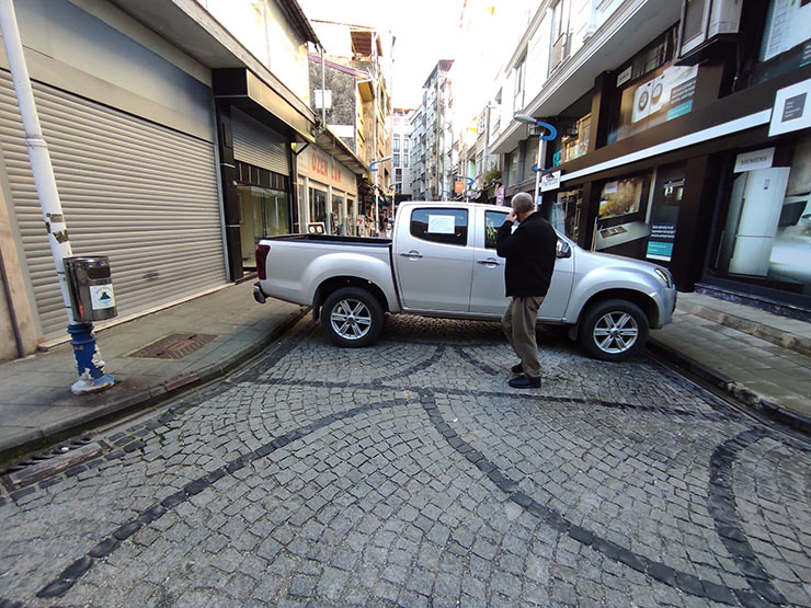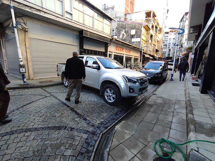 Rize'nin Pazar ilçesinde belediyenin parkomat uygulamasında kişiye özel ayırımcılık yapıldığı gerekçesiyle esnaf protesto amacıyla aracını çekerek sokağı trafiğe kapattı