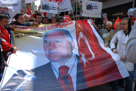 Prof. Mehmet Haberal'ın memleketi Pazar'da düzenlenen protesto mitinginde, Başbakan Erdoğan ve AK Parti aleyhinde sloganlar atıldı.
