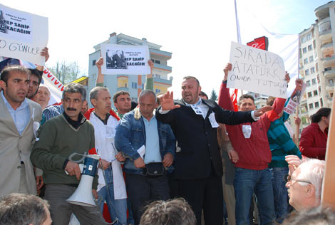 Yaklaşık bin kişinin katıldığı mitingde göstericiler ellerindeki 'Sırada Atatürk var, Onu da tutuklayın', 'Haberal çeteyse, çeteciler burada, Hükümet nerede?' yazılı pankartlarla AK Parti ve başbakan Erdoğan aleyhinde sloganlar atarak şehir merkezinde yürüyüş yaptılar.