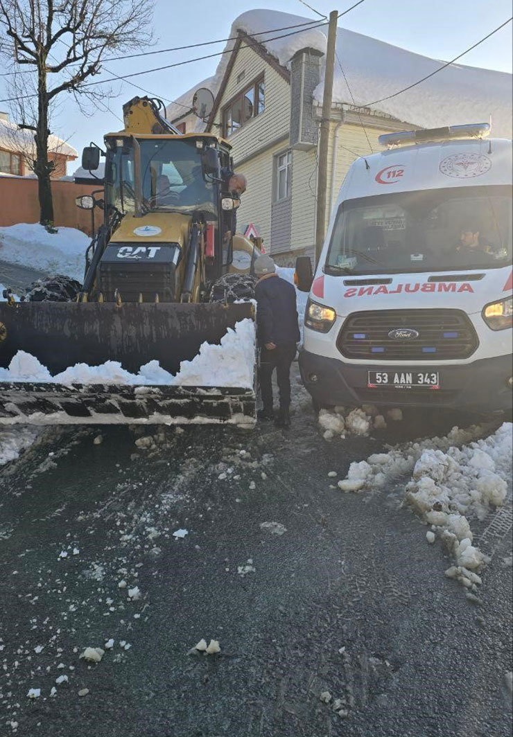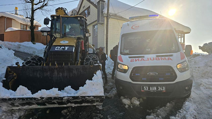 Pazar'da rahatsızlanan hamile kadına müdahale için giden ambulans, kar nedeniyle ulaşamayınca İl Özel İdare ekipleri harekete geçti.