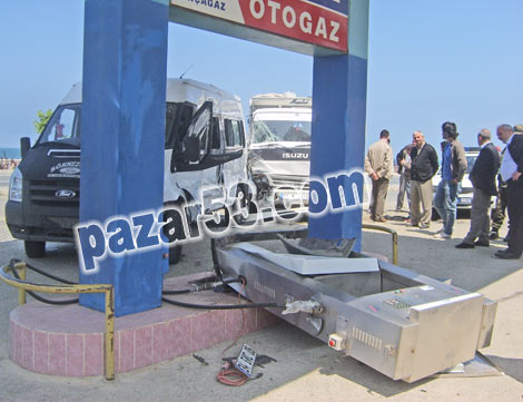 Sahil yolu Kirazlık mevkiinde kamyonun çarptığı minibüs LPG dolum tesisine girdi. 3,5 ton gaz uçtu. Bir kıvılcım faciaya neden olurdu. Kaza ucuz atlatıldı.