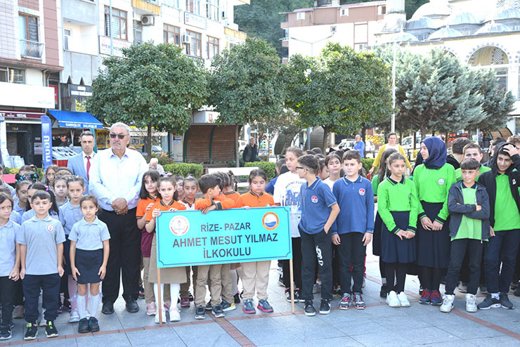 Pazar Belediye Başkanı Ahmet Basa, İlçe Milli Eğitim Müdürü Nimet Büyük, İlçe Milli Eğitim Şube Müdürleri, okul müdürleri, öğretmen, öğrenci ve siyasi partilerle STK temsilcilerinin katılımıyla gerçekleştirilen meydandaki tören, saygı duruşunda bulunulması ve İstiklal Marşı’nın okunması ile sona erdi.