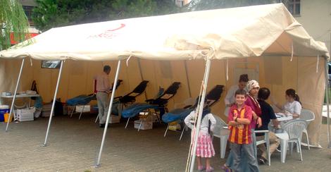 Rize'nin Pazar ilçesinde kan bağışı kampanyası başlatıldı. Eski Hükümet Konağı önünde kurulan çadırda günlük 50 ünite kan bağışı gerçekleşmesini beklediklerini söyleyen Dr. Hatice Tok, Düzenli kan bağışı standardını oturtmak amacıyla, her 3 ayda bir aynı merkezlerde çadırımızı kurup vatandaşlarımızın bağışlarını bekliyoruz. 3 gün süreyle Pazar ilçemizde kan bağışı kampanyamızı sürdüreceğiz. Ayrıca çay fabrikaları ve kurumlarda da sağlık ekiplerimiz kan bağışı taleplerini değerlendiriyorlar. Kan bağışı konusunda halkımızın bilinçlendirilmesi amacıyla okullarda da eğim çalışmalarında bulunuyoruz şeklinde konuştu.