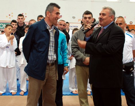 Rize Tekvando İl Temsilcisi Şafak Tatoğlu, Pazar Kaymakamı Yalçın Sezgin'e Tekvando Federasyonu'nun rozetini takarak, turnuva için gösterdikleri ilgiden dolayı teşekkür etti.