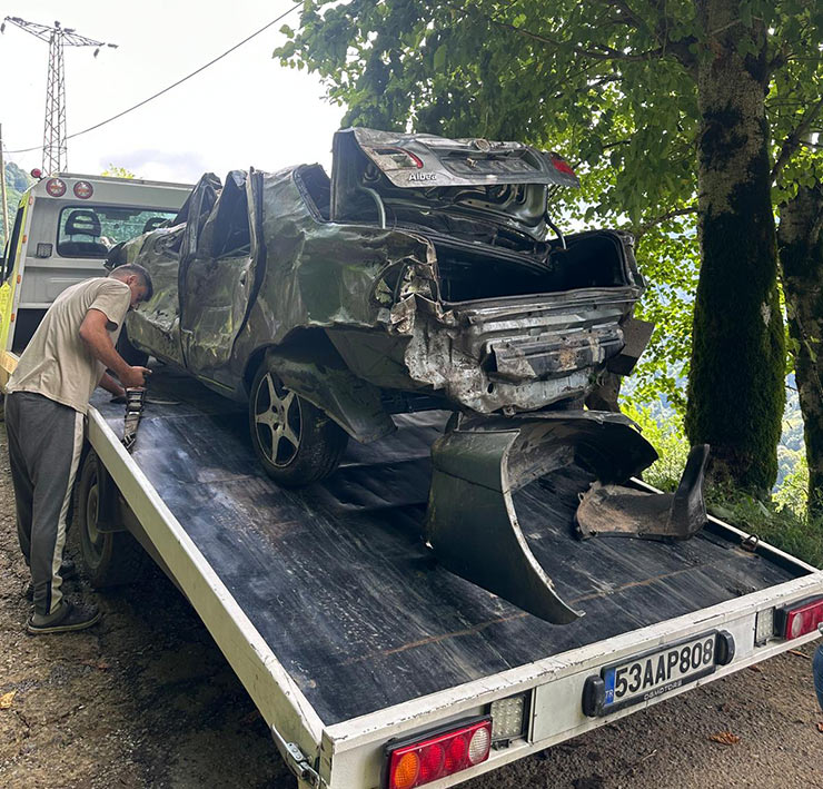 Pazar'da 70 metreden uçan araç kullanılamaz hale gelirken sürücü kazayı hafif sıyrıklarla atlattı