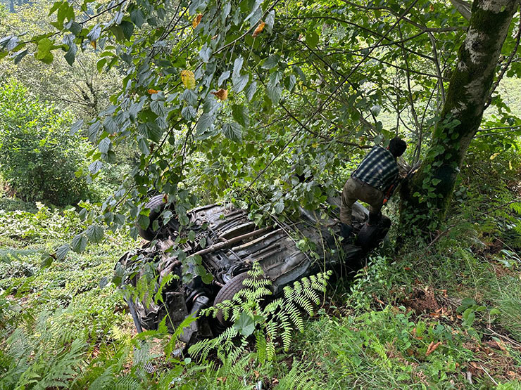 (Pazar53) - Pazar Tektaş Köyü’nde meydana gelen kazada aşırı yağış nedeniyle sürücü direksiyon hâkimiyetini kaybedince araç yaklaşık 70 metre uçuruma yuvarlandı.