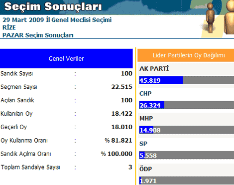 Pazar ilçesi beleiye başkanlığı ve il genel meclisi seçim kesin sonuçları: