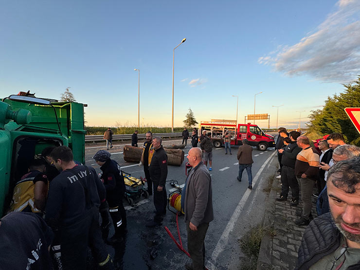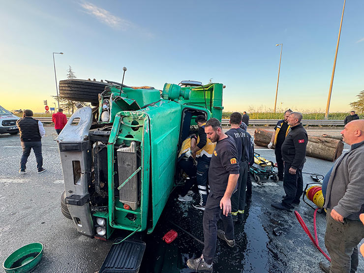 Çarpışmanın etkisiyle kamyon takla attı. Kazayı görenlerin ihbarı üzerine olay yerine çok sayıda sağlık, polis ve itfaiye ekibi sevk edildi.