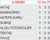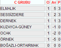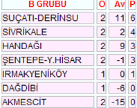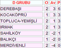 Yapılan karşılaşmalar sonunda, B grubunda Suçatı-Derinsu karması, D grubunda da Derebaşı Köyü liderliği ele geçirdi.