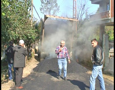 Rize'nin Pazar ilçesinde Belediye ve Karayolları Bölge Müdürlüğü işbirliğiyle Zafer mahallesinde yaklaşık 1,5 kilometrelik yol asfaltlanıyor.