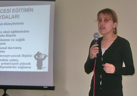 Okulöncesi eğitime katılan ve katılmayan çocuklar arasında, yaklaşık iki okul yılı fark olduğuna dikkat çeken Seda Şentürk Demir, çocuklarda beslenme, aile içi şiddet ve çocukla iletişim, aileye düşen görevler gibi konularda açıklamalarda bulundu.