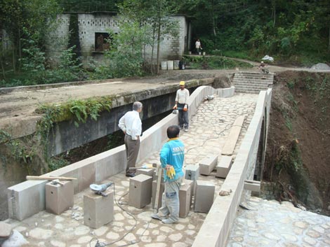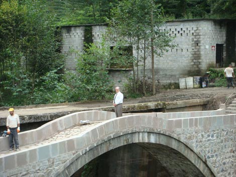 Rize İli Pazar İlçesi sahilinden 7 km Hemşin ilçesine doğru çıkıldığında yol kenarında bulunan Yücehisar Kemer köprüsü onarılıyor.