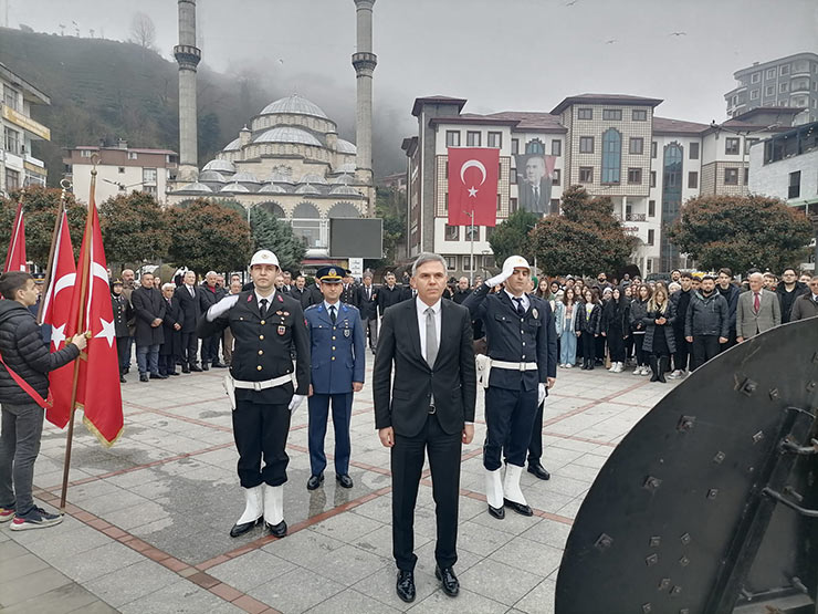 Pazar Kaymakamı Mustafa Akın, Garnizon Komutanı Hava Üsteğmen İhsan Erdemir ve Belediye Başkanı Ahmet Basa’nın Atatürk anıtına çelenk sunumu ile başlayan tören saygı duruşu ve İstiklal Marşı’nın okunmasıyla sona erdi.
