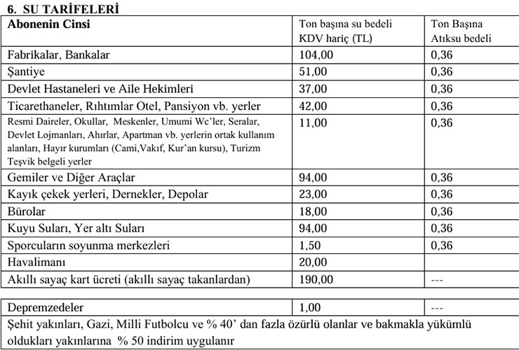 Buna göre yeni su tarifesi KDV hariç şu şekilde oldu: