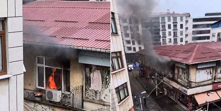 Pazar şehir merkezinde ofiste çıkan yangında alevler bir anda yükseldi...