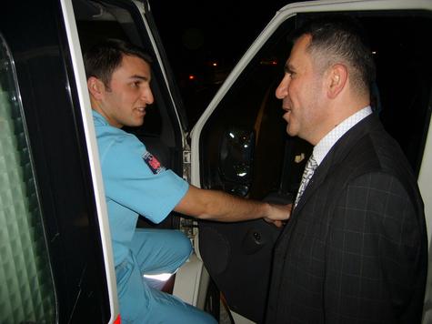 Buraya gelince doğrudan acil servis haberleşme istasyonunu aradık ve kaza ihbarı yaptık. 4 dakikalık bir sürede acil servis ambulansı olay yerine intikal etti. Biz buna çok sevindik.