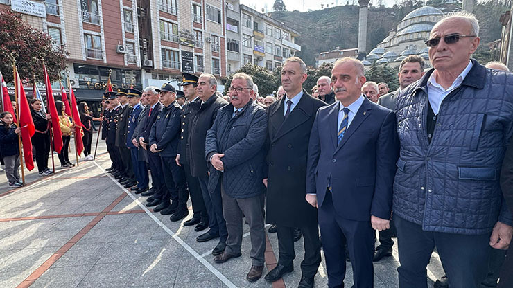 Kaymakam Hamza İnam, Garnizon Komutanı Hava İstihkâm Üsteğmen Murat Demirbaş ve Belediye Başkanı Neşet Çakır’ın Atatürk Anıtı’na çelenk sunmasının ardından, saygı duruşunda bulunuldu ve İstiklal Marşı okundu.