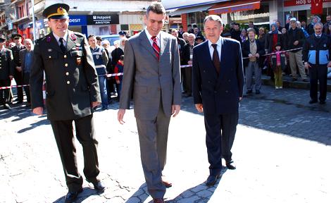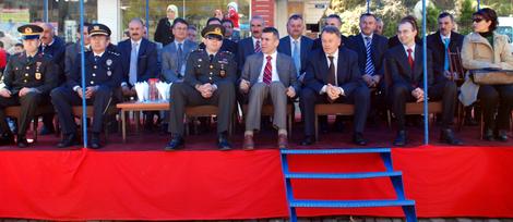 Saat 10.00'da Hükümet Meydanı önünde saygı duruşu ve İstiklal Marşıyla devam eden törenlerde ilçe Kaymakamı Yalçın Sezgin, Belediye Başkanı Hikmet Hatırnaz ve Garnizon Komutanı Jandarma Yüzbaşı Mehmet Akif Şahin, öğrencilerle vatandaşların bayramını kutladı.