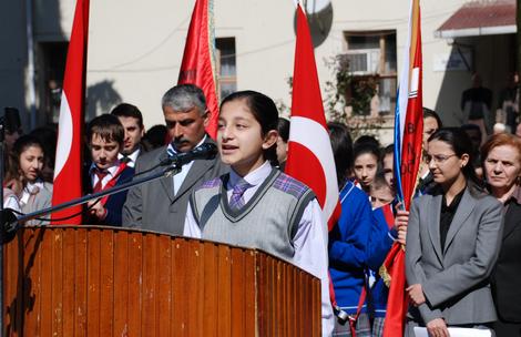 Tören, öğrencilerin okudukları şiirlerin ardından geçit töreniyle sona erdi.