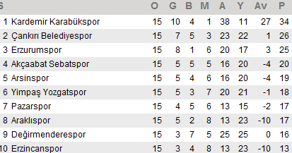 TFF 2. Lig 4. Grup 15. Hafta Toplu Sonuçlar: