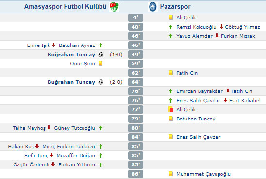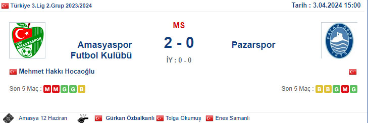3. Lig 2. Grup 26. hafta maçında Pazarspor deplasmanda Amasyaspor FK takımına 2-0 yenildi...