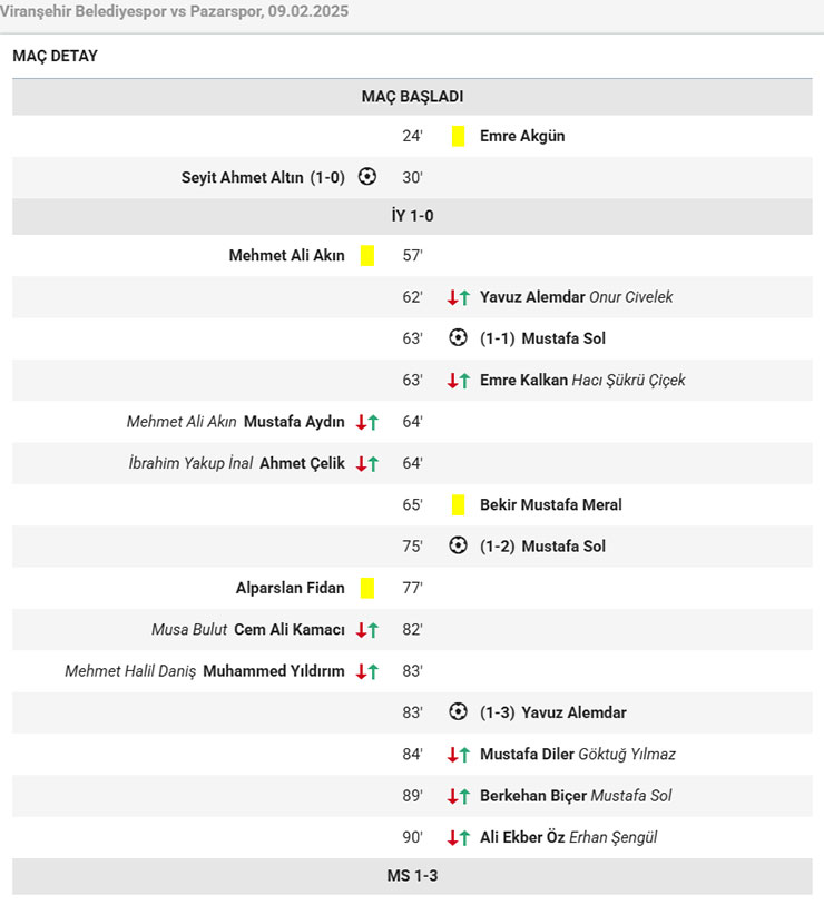 Viranşehir deplasmanında ilk devreyi 1-0 geride bitiren Pazarspor, müsabakada 3 puanı, 3-1'lik skorla elde etti.
