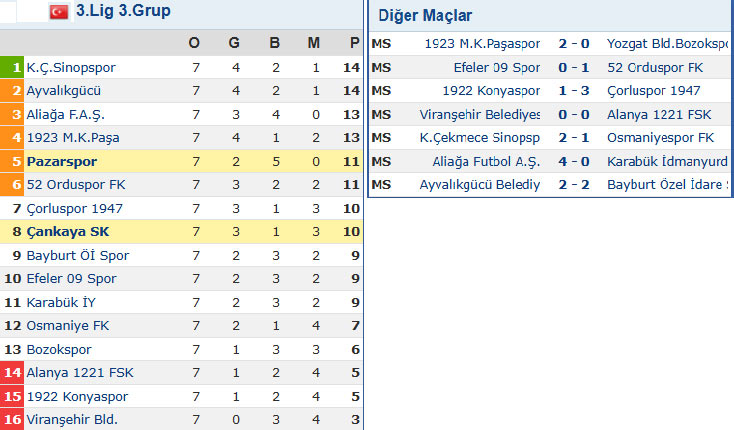 TFF 3. Lig 3. Grup 7. hafta maçında Pazarspor kendi evinde oynadığı maçta Çankaya SK karşısında 2-0 galip geldi...