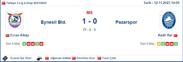 Bu sezon düştüğü 3. Lig'de de istikrarsız sonuçlar alan Pazarspor, grubun zayıf takımlarından Eynesil Belediyespor'a 1-0 yenilerek zirve yarışında yara aldı.