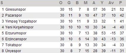 PAZARSPOR: Fethi xx, Mehmet Sinan xx (Yasin dk. 69 xx), Ali xx, Mehmet Çakır x, Hakan xx (Fatih dk. 89 ?), Ramazan xx, Hasan x, Emre xx (Avni dk. 85 ?), Sadettin xx, Ozan xx, Mücahit xx