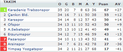 Takipçisinden 1 puan önde giden Pazarspor, Akçaabat Sebatspor'a 2-1 mağlup olunca, Yozgat deplasmanından 3 puanla dönen rakibi Erzurumspor'un da 2 puan gerisine düşerek sıralamada sondan 3. oldu.