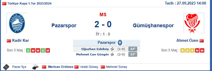 Türkiye Kupası 1. Tur maçında Pazarspor evinde oynadığı maçta Gümüşhanespor'u 2-0 mağlup ederek tur atladı.