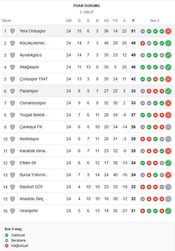 GOLLER: Dk.44 Haci Şükrü Çiçek, dk.50 Mustafa Sol (Pazarspor), dk.55 Ali Kemal Başaran (52 Orduspor FK)
