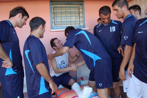 Ayak bileğindeki sakatlık nedeniyle ameliyat olan Kaptan Erdinç Müsabakayı saha kenarından izlerken Pazarspor futbolcuları ve teknik heyeti de kendisine moral verdiler.