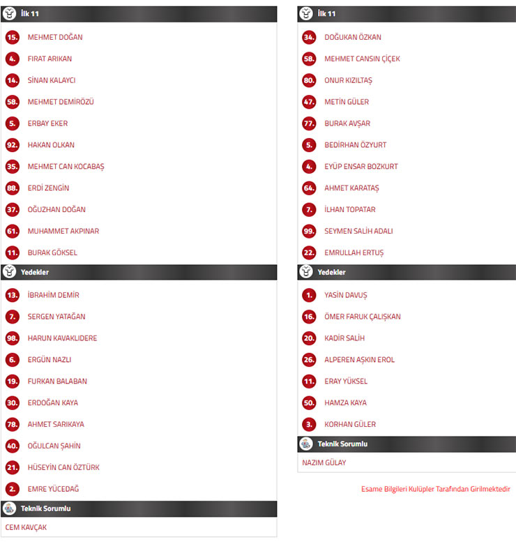 HAKEMLER: Ramazan Doğanay, Önder Çalış, Burak Sami Şad