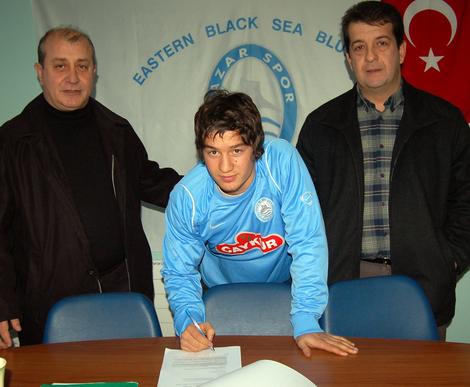Pazarspor Tesisleri'ndeki imza töreninde Futbol Şube Sorumlusu Mahmut Naiboğlu ve yardımcısı Hasan Balta da hazır bulundular.