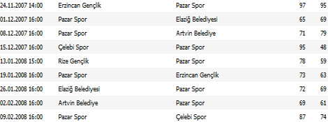 Pazarspor Basketbol Takımı ise M. Akif Pirim Kapalı Spor Salonunda ağırladığı Erzurum Çelebispor'u 8774 mağlup ederek ligdeki ikinci galibiyetini elde etti. Son derece çekişmeli geçen maçın son periyodunda öne geçen Pazarspor 13 sayı farkla maçı kazanmasını bildi.