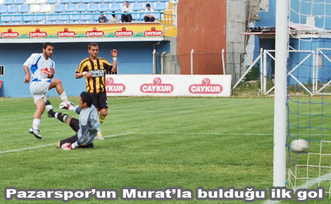 Dak. 12: soldan Erdinç'in ortasında topla buluşan Murat, kalecinin yanından meşin yuvarlağı ağlara göndererek Pazarspor'u 10 öne geçirdi.