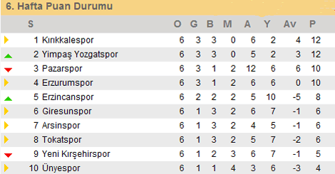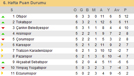 Bu sezon 6. hafta sonunda ligin alt sıralarına demir atan Pazarspor maç fazlasıyla 8. sırada yer aldı.