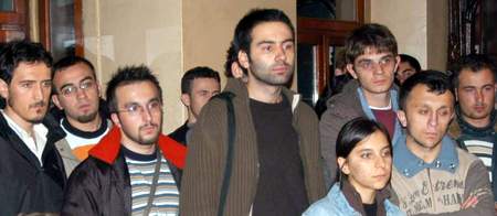Halkevleri Trabzon Şubesi Başkanı Ahmet Üst, dernek üyeleri ve serbest bırakılan öğrencilerle birlikte Trabzon Gazeteciler Cemiyeti'nde basın açıklaması yaptı.