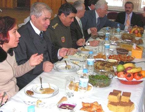 Mustafa BAYRAK - Rize halk eğitim merkez müdürlüğünde yerli malı haftası nedeniyle öğrencilerin yaptığı karalâhana dolma, pekmezli kabak, kabak tatlısı, muhlama, kabak pilavı, enişte lokumu, mısır ekmeği, kara üzüm pekmezi, hamsili ekmek, lahana haşlama, lahana vurma, turşu tavalısı, hamsi kuşu, Laz böreği, pepeçura, içli hamsi, kabak sütlacı ile değişik çeşit yöresel yemekler Rize valisi Kasım Esen, Garnizon komutanı Erol Çelik ve bürokratlar ile vatandaşlar tarafından afiyetle yenildi.