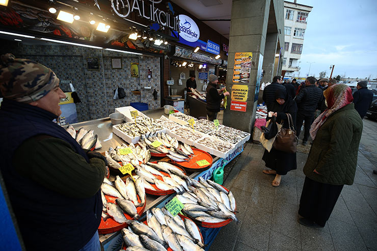 Hava sıcaklıklarının mevsim normallerinde seyrettiği Trabzon'da, Ortahisar ilçesindeki balık pazarında istavrit, mezgit, kupes, izmarit, palamut, levrek ve çupra tezgahlarda yerini aldı. Balıkçılar, izmaritin kilogramını 35, istavritin 75, mezgidin ise 65 liradan satışa sundu.